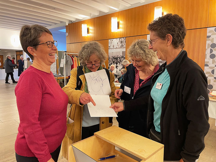 Messekoordinatorin Gaby Nickel (rechts) freut sich mit einer Besucherin und dem IDfK-Team über die Ergebnisse