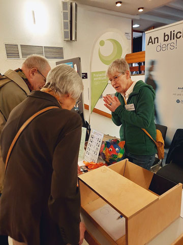 Noch bis zum 30. April 2025 zeigt die IDfK eine Ausstellung im Atrium des Gießener Rathauses. Die Ausstellung reflektiert 15 Jahre ehrenamtliches Engagement für Menschen mit Demenz und ihre Angehörigen.